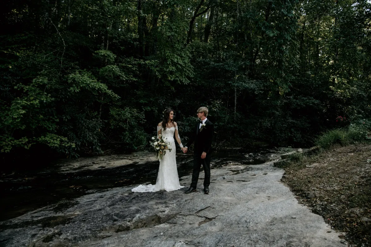 Nestled in the heart of Landrum, SC, The Venue at Ballenger Bridge is a historic wedding venue that beautifully blends nature’s splendor with refined elegance. Situated on 200 acres of private land in the scenic Dark Corner of Upstate South Carolina, this former 1820s grist mill offers stunning views of the Middle Tyger River and Glassy Mountain.